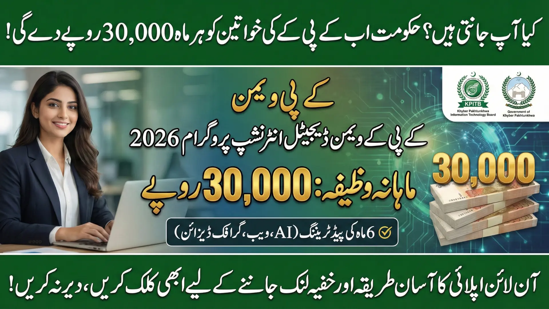Under the KP digital internship program 2026, selected female interns receive a monthly stipend of Rs. 30,000 for six months along with hands-on training.