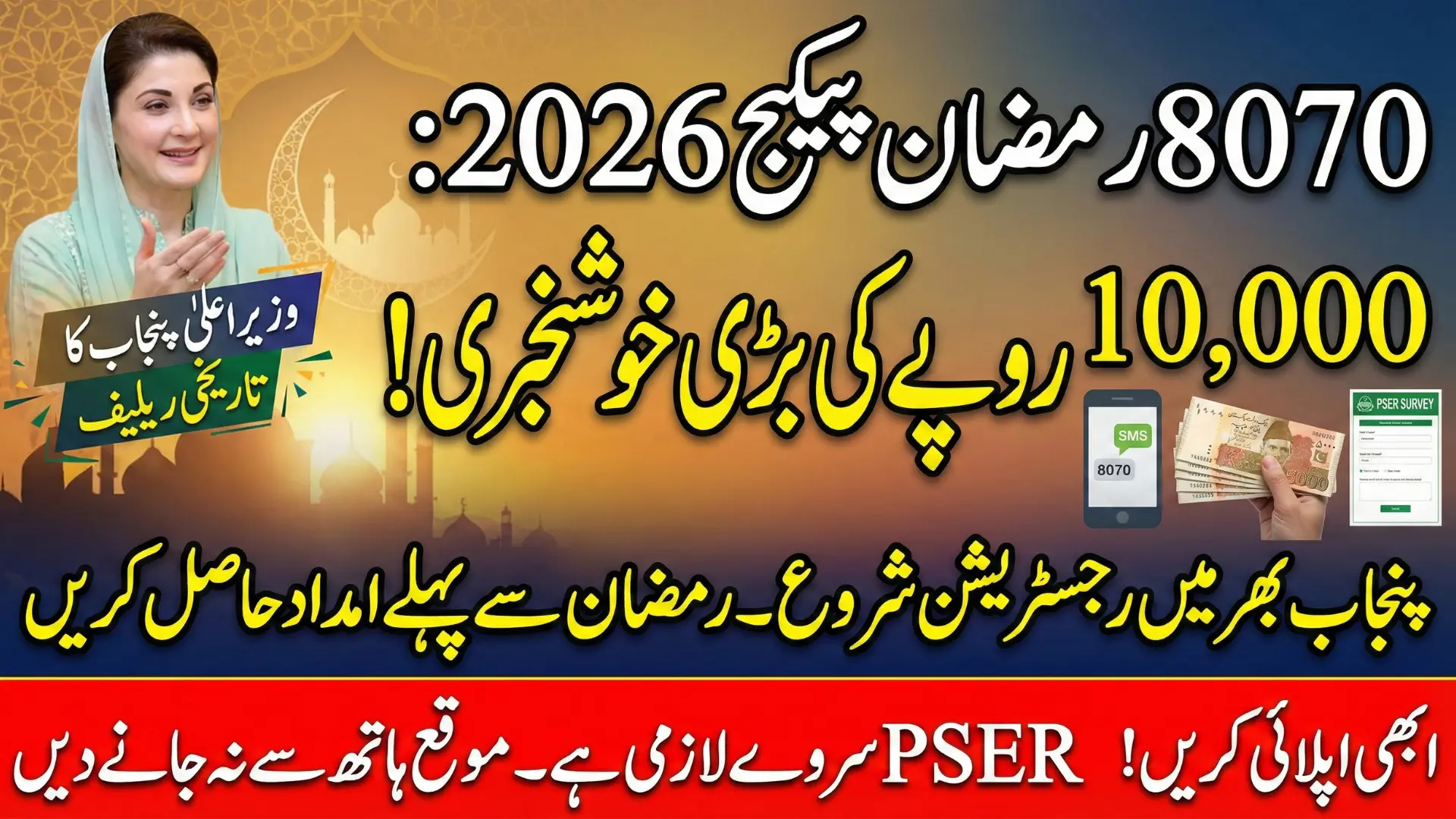 Registration is only possible through the PSER survey, which can be completed via door-to-door teams, Union Councils, or the PSER online portal. Eligible families will receive payments through official channels, with SMS alerts for confirmation. This initiative aims to reduce Ramadan expenses and help families observe the holy month with dignity and peace.