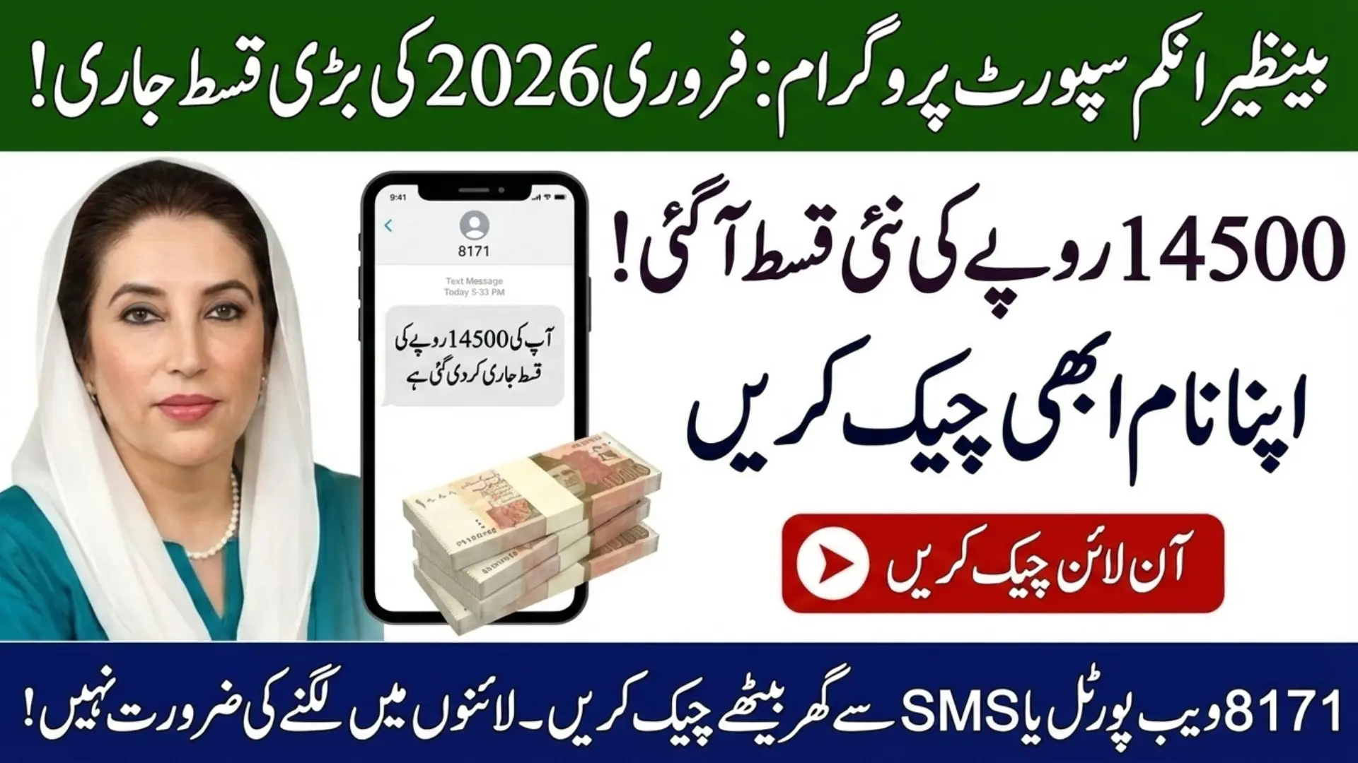 8171 Web Portal 2026 Check Online 14500 helps Pakistani families quickly confirm their February BISP payment without standing in long queues. Under the latest update, existing beneficiaries are receiving Rs. 13,500, while new or backlog cases may get up to Rs. 14,500.