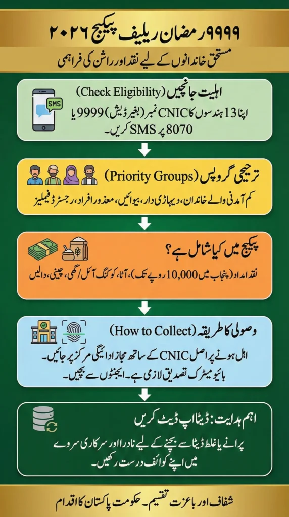 The 9999 Ramzan Relief Package 2026 reflects a shift toward respectful, data-based welfare in Pakistan. With cash assistance, rashan support, and SMS-based verification, the program ensures help reaches the right homes at the right time.