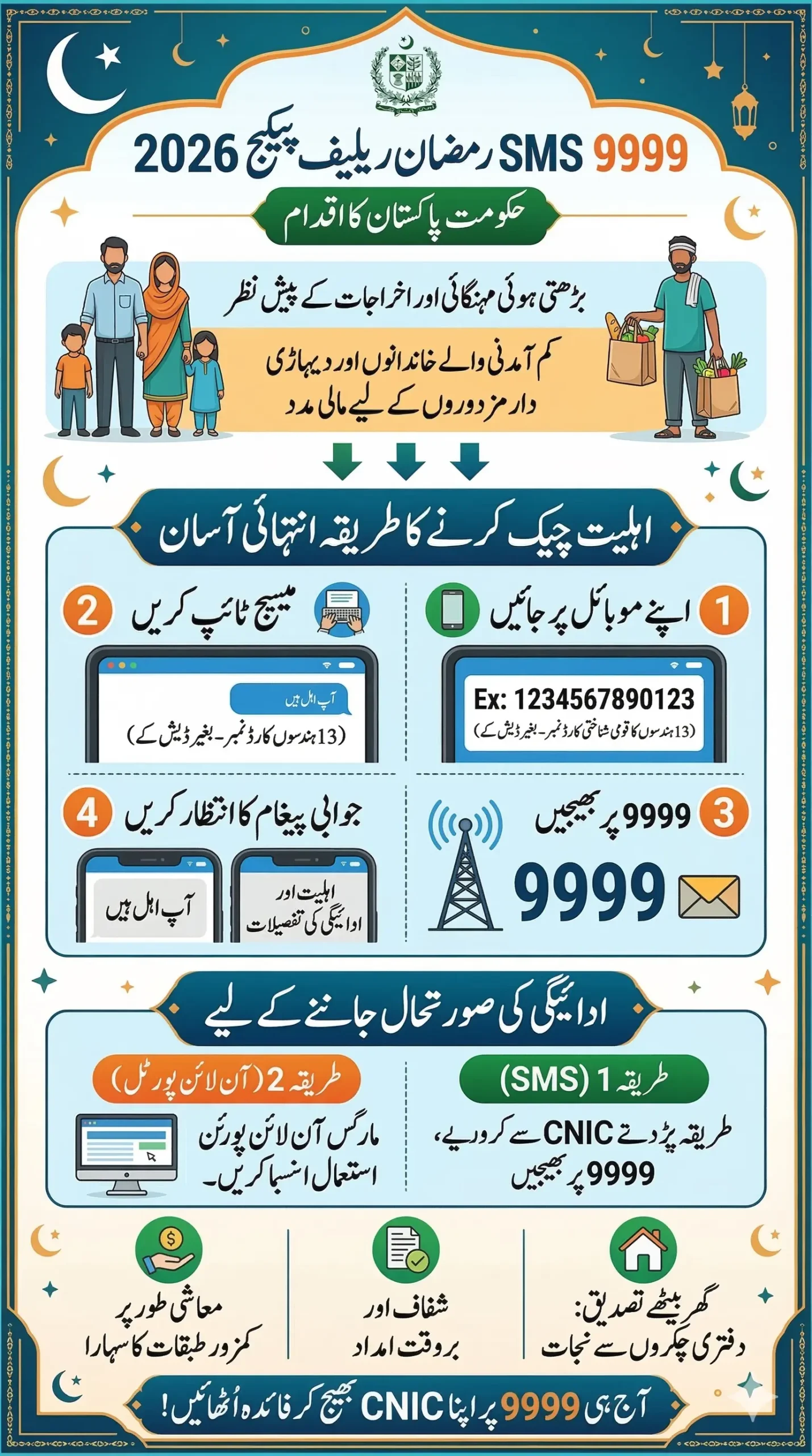 The 9999 SMS Ramzan Relief Package 2026 Check Eligibility By CNIC system has made it much easier for people to verify their eligibility and receive financial assistance during Ramzan.