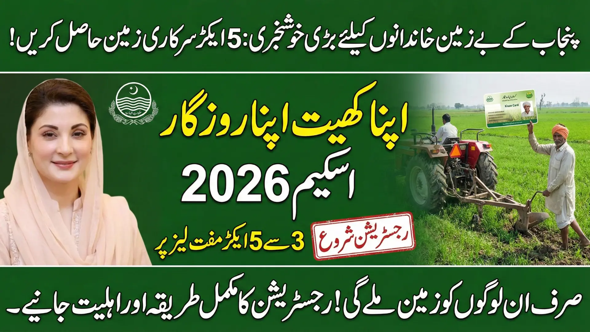 Apna Khet Apna Rozgar Scheme Registration opens a pathway for landless families in Punjab to qualify for the 2026 land program through long-term agricultural leases. Approved in January 2026 under Chief Minister Maryam Nawaz Sharif, the scheme targets low-income rural households and youth with farming backgrounds.