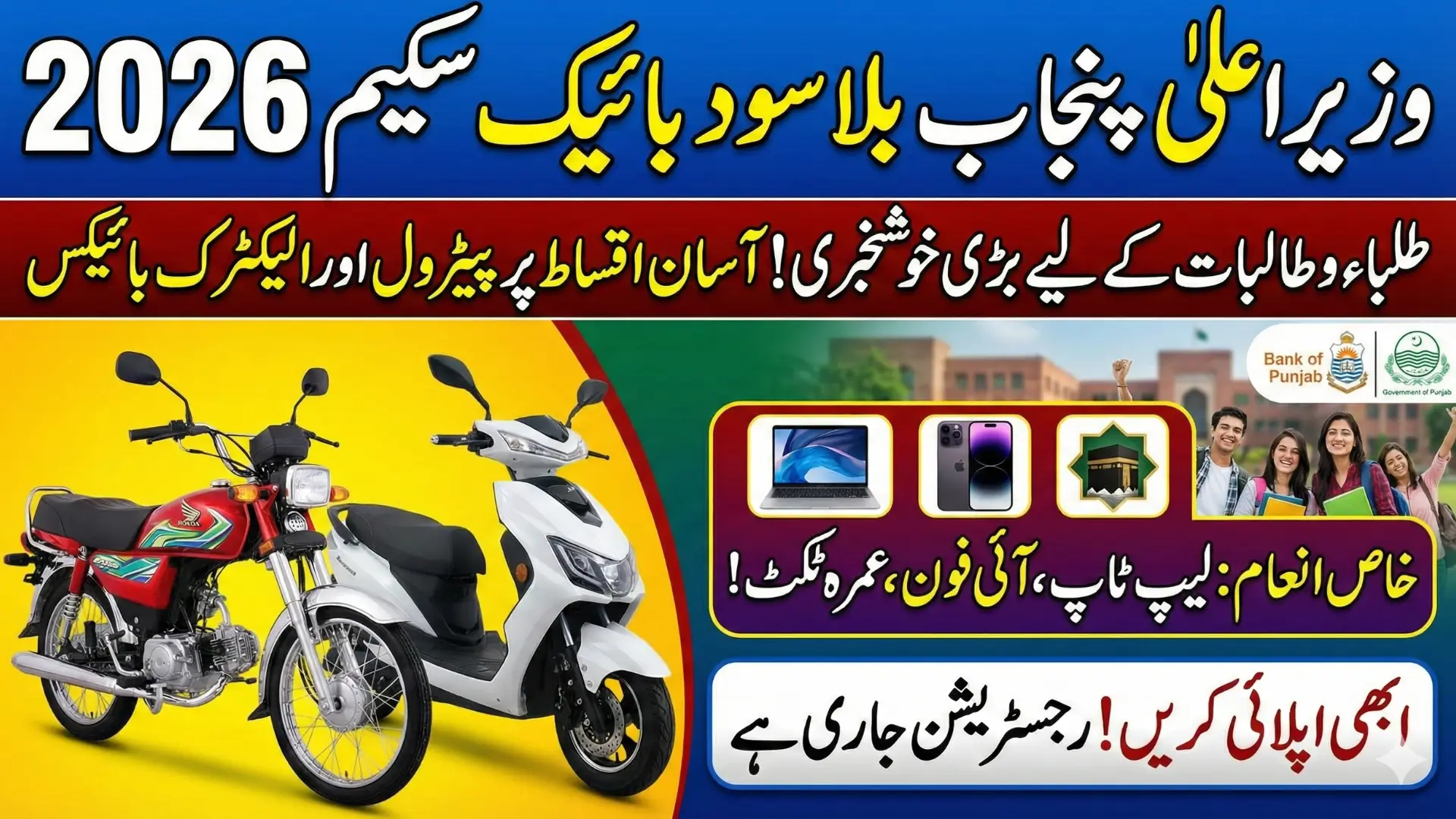The CM Interest-Free Bike Scheme 2026 is a Punjab government initiative to help students manage daily travel to colleges and universities. Through the Bank of Punjab, eligible students can get a motorcycle or electric bike on easy, interest-free installments.