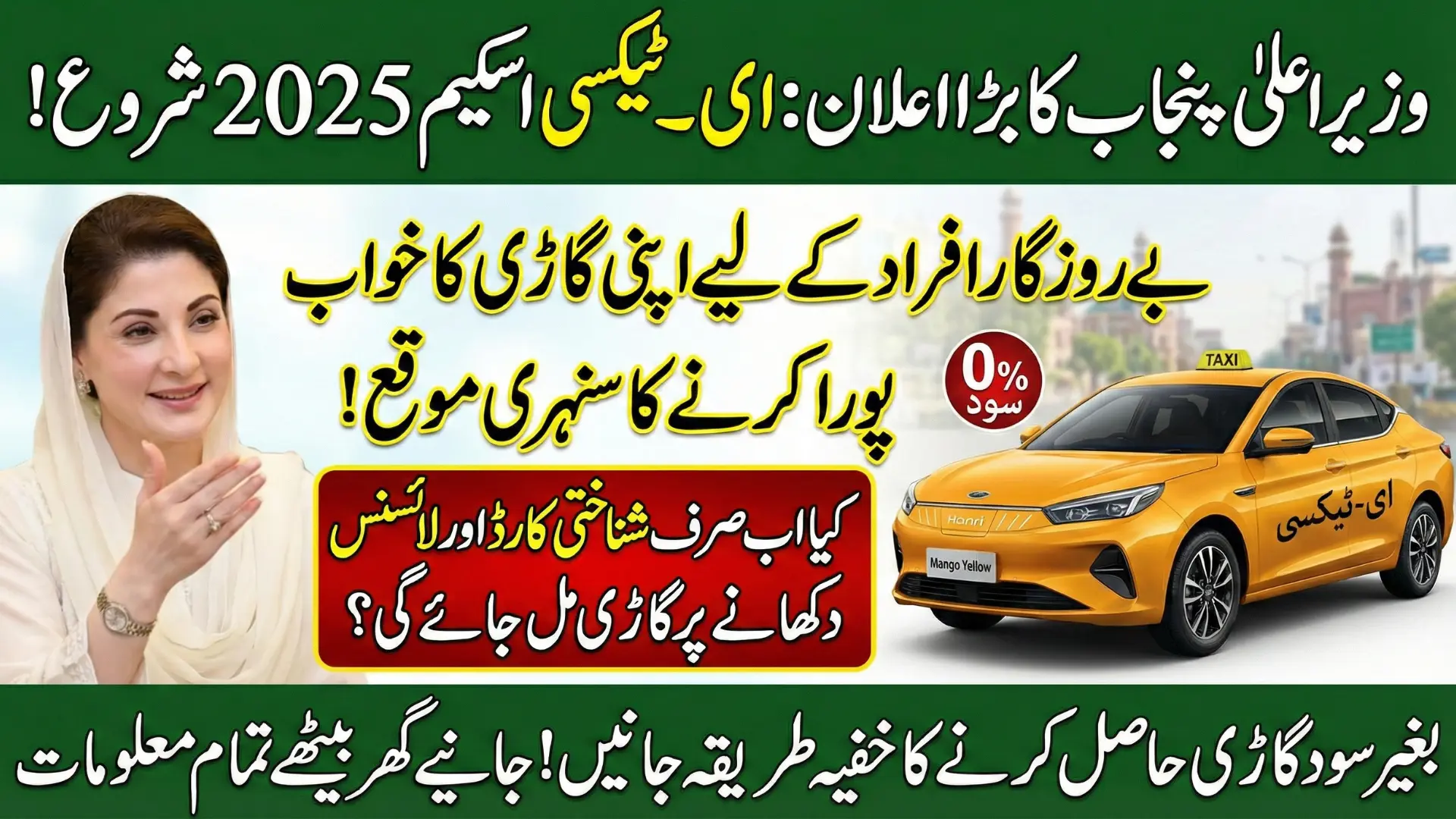 Punjab Government’s CM Punjab E Taxi Scheme 2026 Apply Online is a scheme launched to provide electric taxis to unemployed and low-income people on easy, interest-free installments. In the first phase of this scheme, 1100 e-taxis will be provided to the residents of Lahore, later the project will be extended to all districts of Punjab.