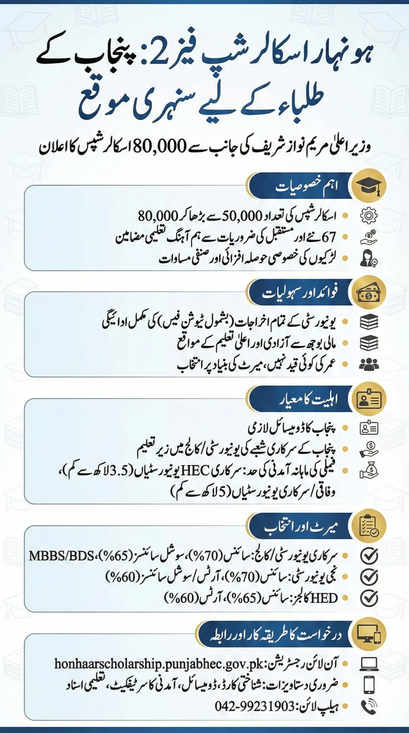 The Honhaar Scholarship Phase 2 is a game-changing opportunity for students in Punjab who dream of completing their education without financial barriers. With 80,000 scholarships now available, more young people will have the chance to study in high-demand fields and build a bright future.