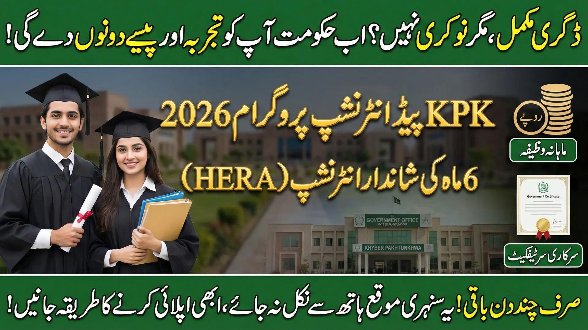 It is a six-month paid internship offered by HERA (Government of Khyber Pakhtunkhwa) to provide practical experience to fresh graduates.