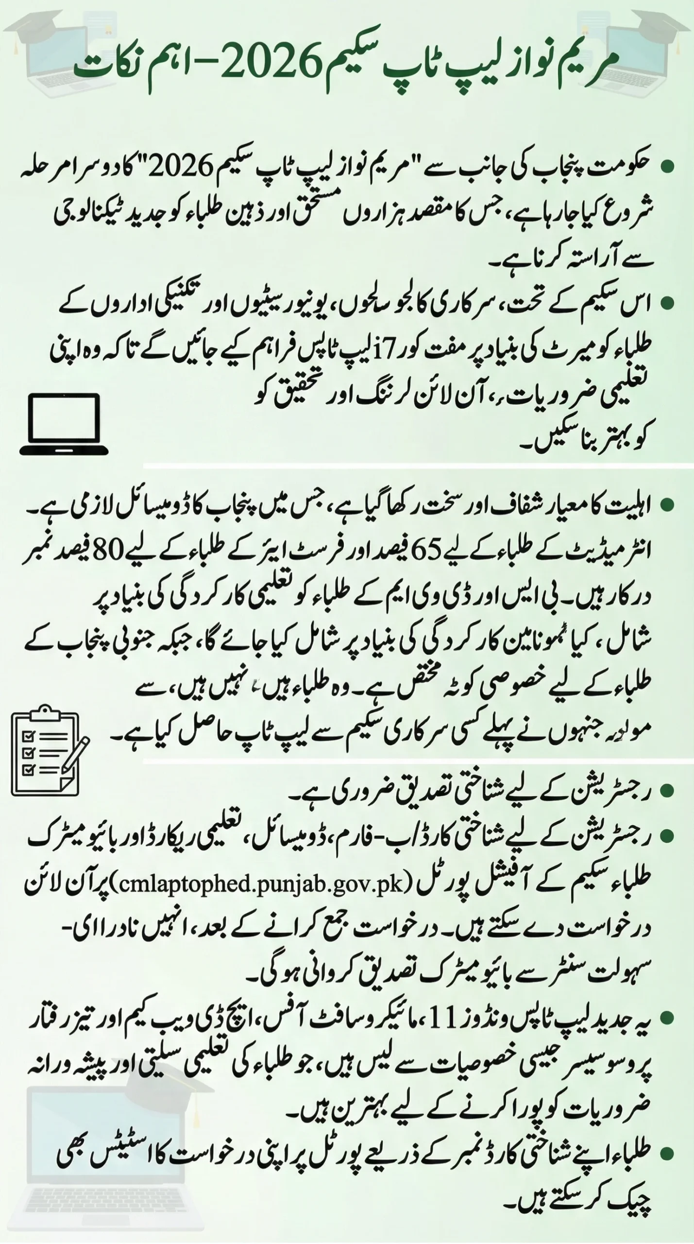 Eligibility Criteria for Maryam Nawaz Laptop Scheme 2026