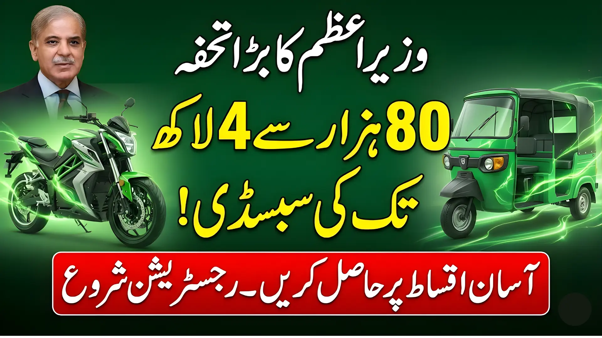 Travel will change Pakistan, a good initiative has been launched by Prime Minister Shahbaz Sharif, the PM Electric Bike and Rickshaw Scheme. Under which subsidy will be given on 40,000 electric motorcycles and 1,000 electric rickshaws in Pakistan. Its registration process has started. For the convenience of the public, the online registration process of this Prime Minister’s program has started. You can apply online from home. You will be provided with a subsidy of up to Rs 80,000 on electric motorcycles. You will be given a subsidy of up to Rs 400,000 on three-wheeler electric rickshaws and loader rickshaws.