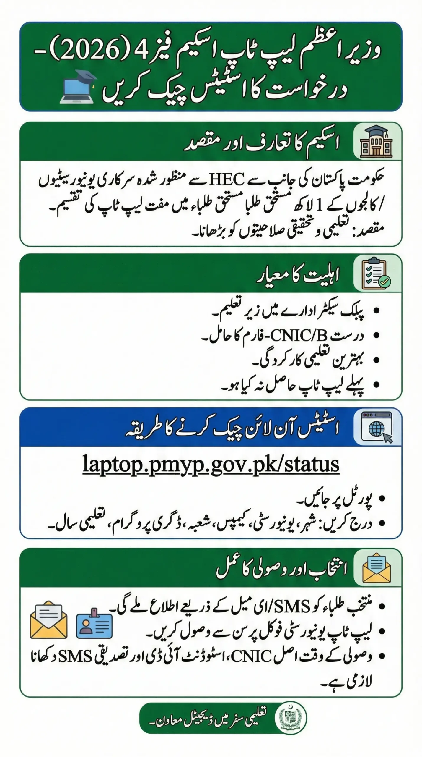 - ✅ Application Status Check: https://laptop.pmyp.gov.pk/status