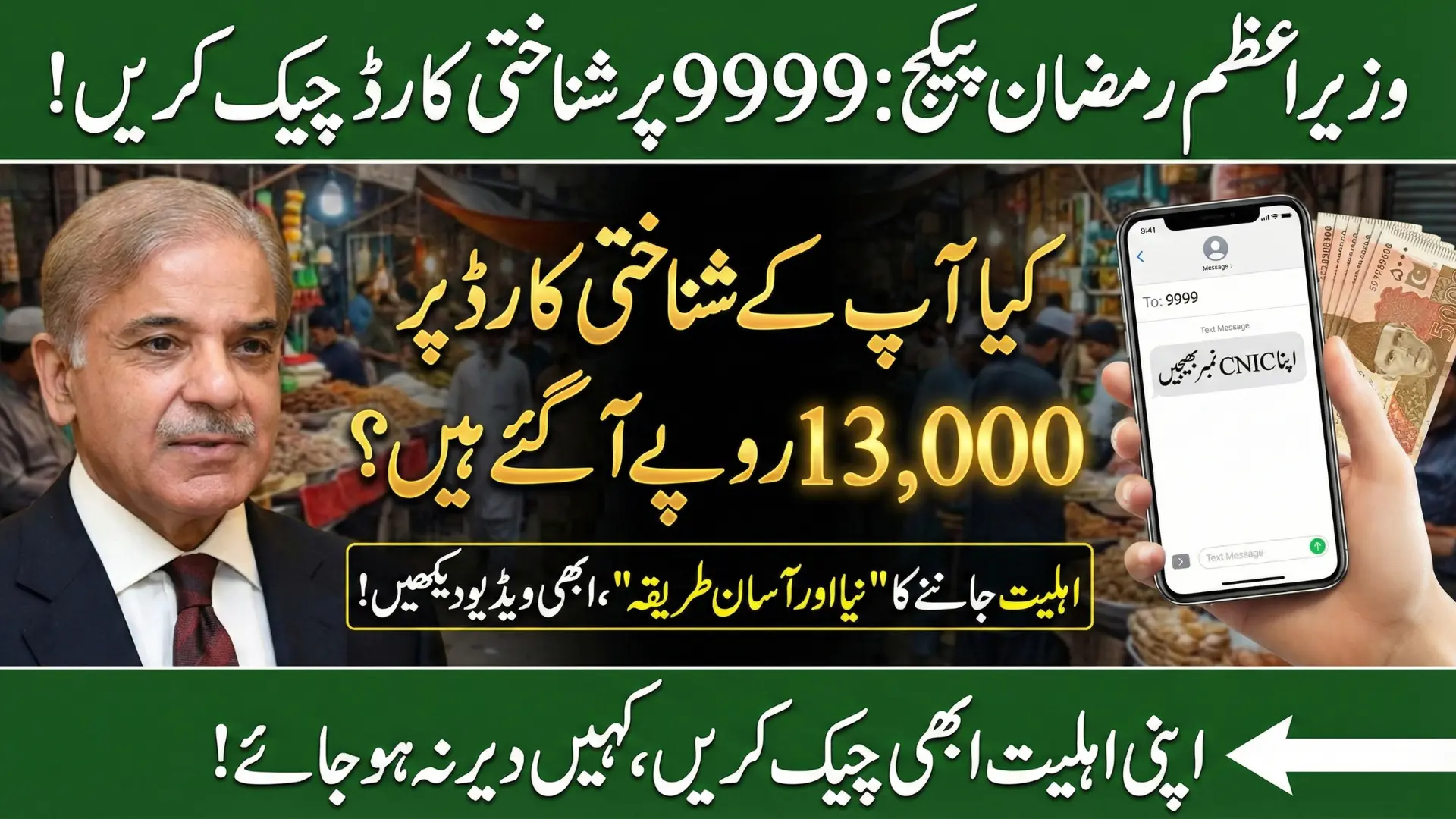 The PM Ramzan Package CNIC Check Via 9999 2026 allows families to confirm if they qualify for Rs 13,000 cash aid for Ramadan 2026. Under this scheme, 12.1 million poor and deserving families will receive support through digital wallets and bank accounts to ensure transparent payments.