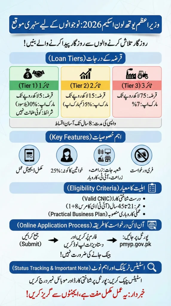 The PM Youth Loan Scheme 2026 offers young Pakistanis a powerful opportunity to start or expand a business through interest-free and low-markup loans up to Rs. 7.5 million. Managed through the official pmyp.gov.pk portal, the scheme allows online application and CNIC-based status tracking without visiting banks.