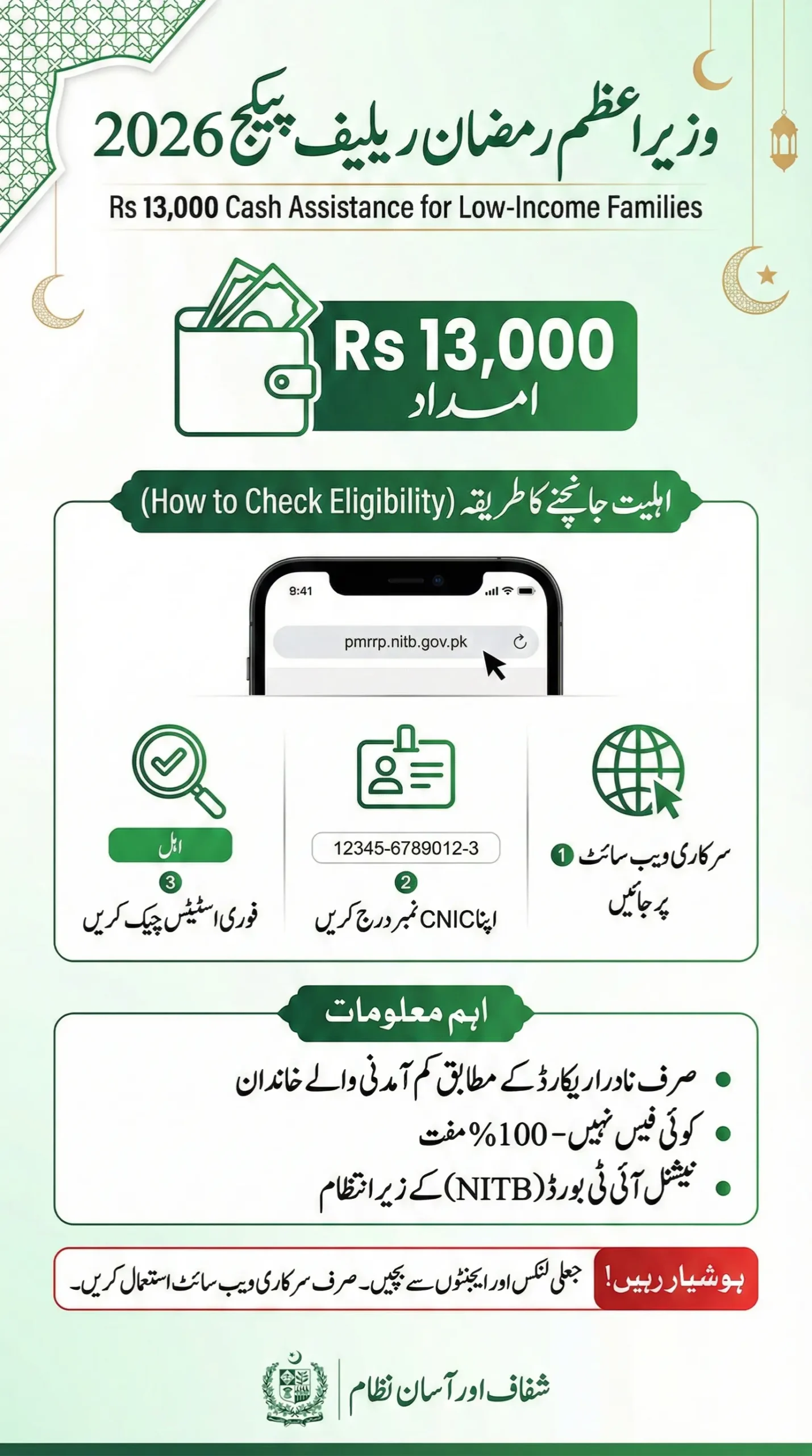 The pmrrp.nitb.gov.pk check 2026 portal gives Pakistani families a simple, transparent way to verify their eligibility for the Rs 13,000 PM Ramzan Relief Package.