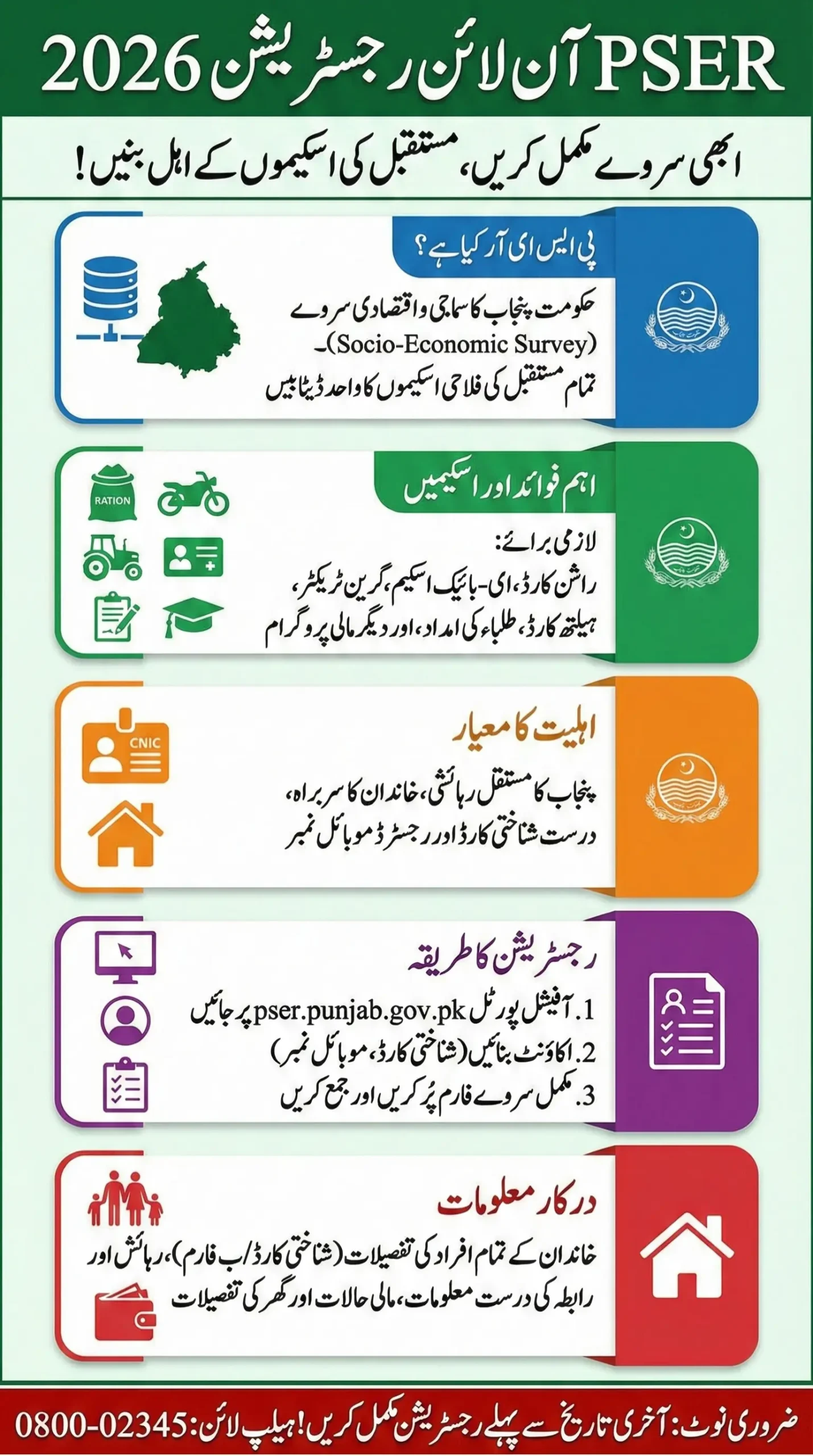 The PSER Survey 2026 is a province-wide initiative by the Punjab government designed to collect socio-economic data of all families living in Punjab. The purpose is to ensure that government welfare programs only reach deserving households.