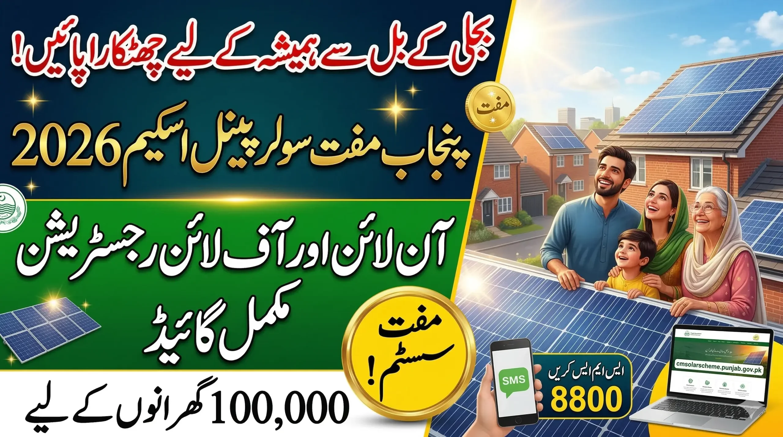 Applicants can register through the official portal cmsolarscheme.punjab.gov.pk or send their CNIC and electricity bill reference number to 8800 via SMS. After verification, beneficiaries will be selected through a transparent computerized lottery system. This initiative aims to support 100,000 families while promoting renewable energy across the province.